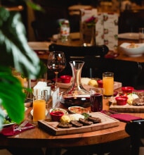 Tomato sauce, Burrata, Parmesan & mozzarella cheese, Fresh Arugula. Ricotta cheese and fresh basil pesto.